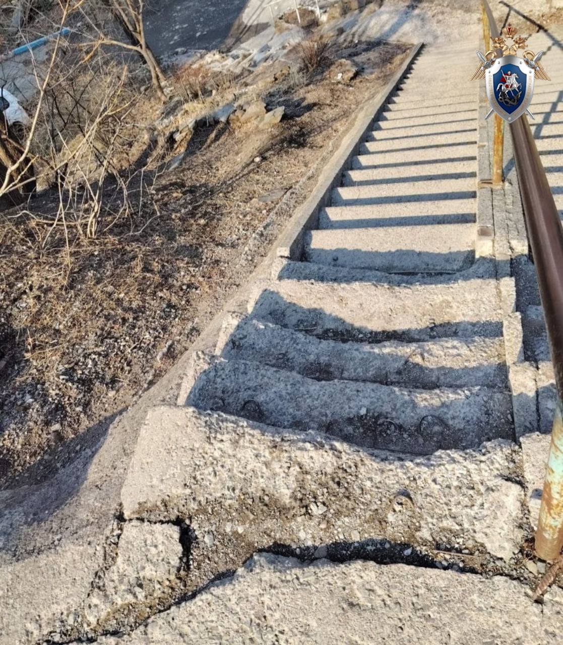 Следственными органами СКР по Приморскому краю организована доследственная проверка по сообщению, распространенному в средствах массовой информации и социальных сетях, о травмировании женщины в результате падения на аварийной лестнице.