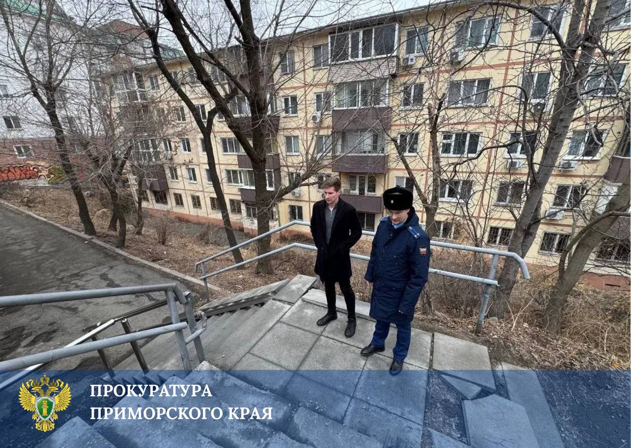 Прокуратура провела проверку по факту аварийного состояния лестницы, ведущей к автобусной остановке в центре Владивостока