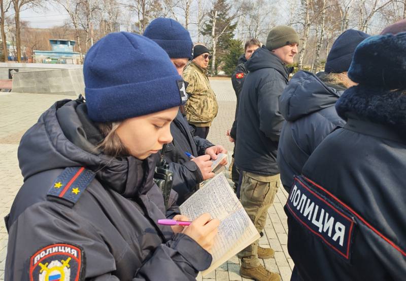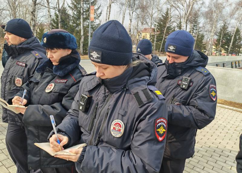 В городе Артеме около мемориала воинам, погибшим в годы Великой Отечественной войны, прошел общегородской инструктаж. На мероприятии присутствовали сотрудники патрульно-постовых служб, участковые уполномоченные полиции, сотрудники Росгвардии и представители добровольной народной дружины «СВОИ».