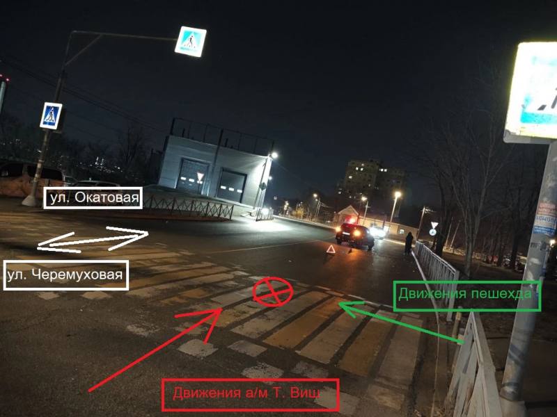 По предварительной информации, 4 апреля около 23.10 в районе дома № 1 на улице Харьковская 32 - летний водитель автомашины Тойота Виш, двигаясь со стороны улицы Черемуховая в направлении Окатовой, совершил наезд на пешехода, переходящего проезжую часть дороги по нерегулируемому пешеходному переходу справа налево по ходу движения транспортного средства.