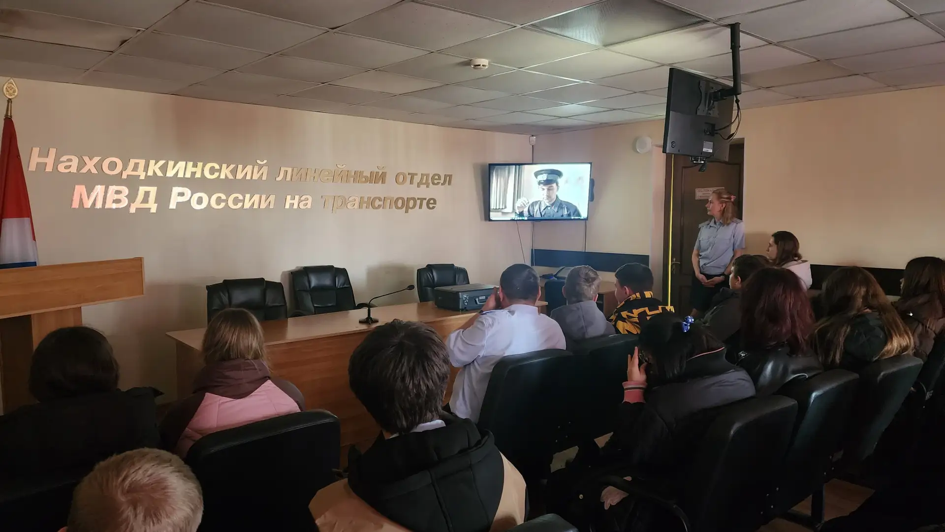 Старший юрисконсульт Елена Терлянская, в ходе экскурсии по Находкинскому ЛО МВД России на транспорте рассказала ребятам интересные факты из истории становления органов внутренних дел на транспорте. Особое внимание уделила стендам с ветеранами МВД России, рассказав о некоторых ветеранах более подробно.