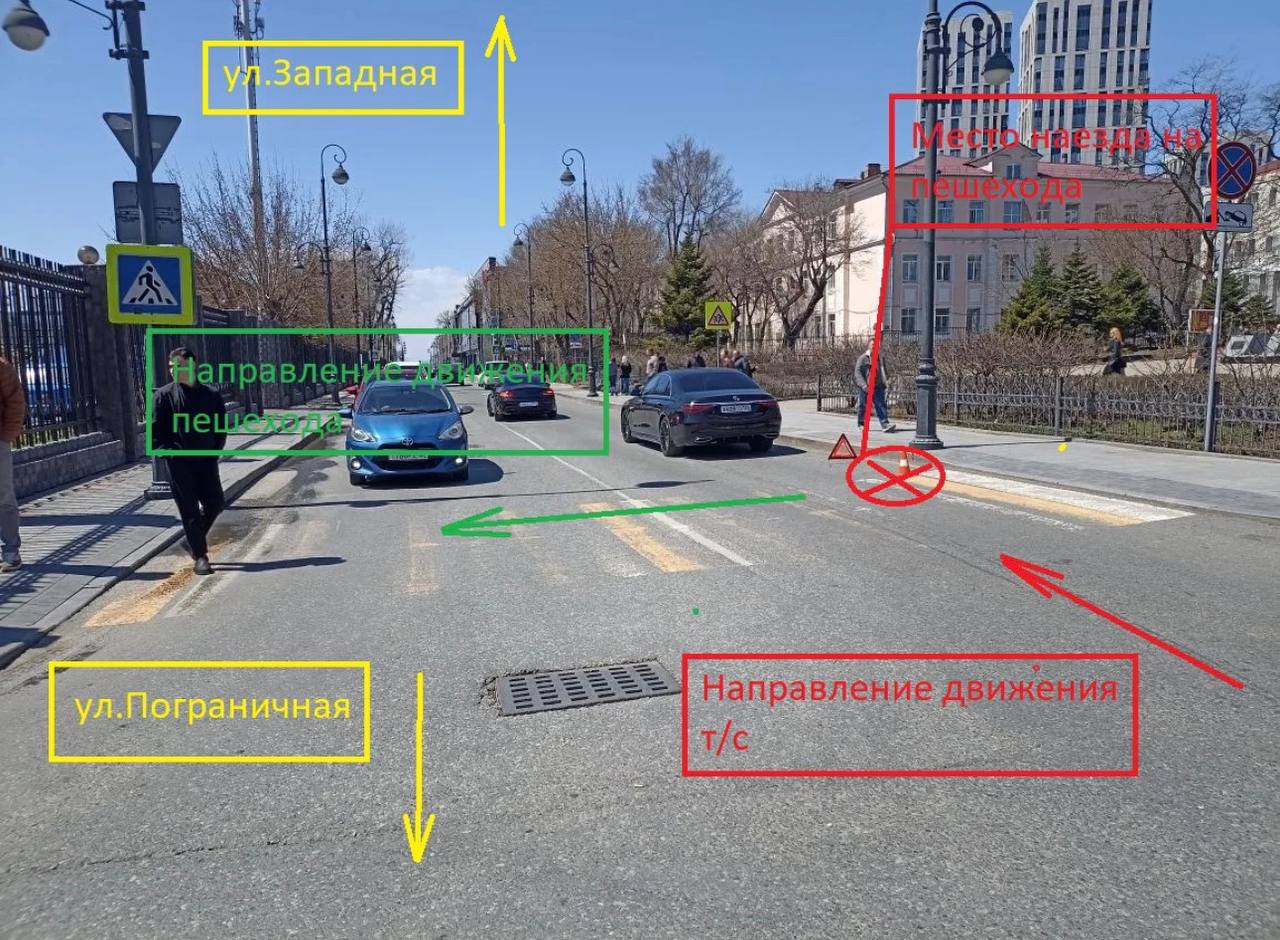 По предварительной информации, 21 апреля около 12.30 в районе дома № 12 на улице Пограничной 54-летний водитель Мерседеса с 36-летним стажем управления автотранспортом совершил наезд на пешехода, переходящего проезжую часть дороги по нерегулируемому пешеходному переходу справа налево по ходу движения транспортного средства.