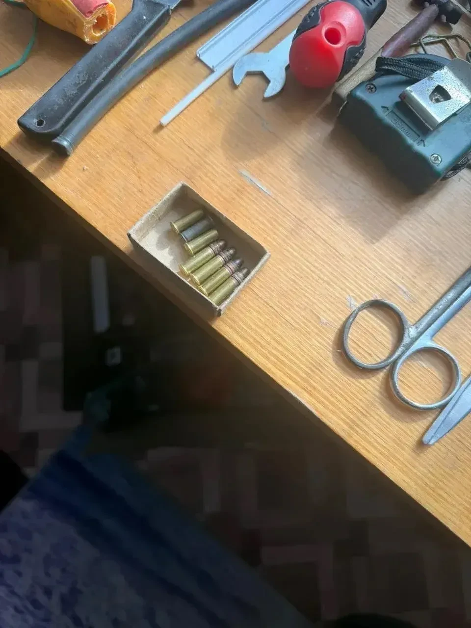В ходе осмотра участка местности, указанного мужчиной, во дворе дома обнаружена самодельная ручка-пистолет. Злоумышленник признался, что раньше работал фрезеровщиком и оружие изготовил самостоятельно. Позже в ходе обыска, поведенного с участием кинолога и служебно-разыскной собаки, в его квартире обнаружены 4 патрона.