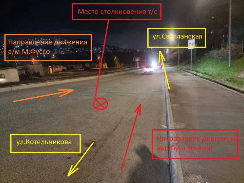 Еще одно ДТП произошло в 11.30 в районе дома № 85 на улице Луговая. 71-летний водитель, управляя пассажирским автобусом Зонтонг, двигаясь по улице Луговая со стороны Котельникова в направлении Светланской, при перестроении не уступил дорогу грузовому автомобилю марки Фусо, который двигался в попутном направлении.