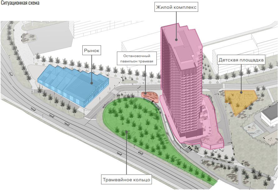 В дальнейшем на участке планируется строительство жилого комплекса высотой до 25 этажей. На первых этажах разместятся объекты коммерческой инфраструктуры, также проектом предусмотрен встроенный детский сад и двухуровневая подземная парковка. Проект реализует компания СЗ «Парковые высоты» (входит в ГК «Остов») в рамках соглашения о комплексном развитии территории.