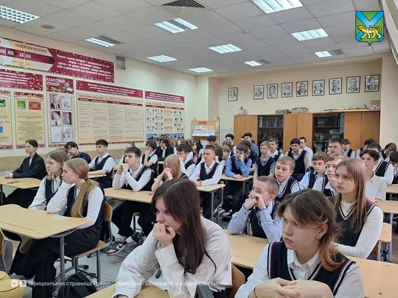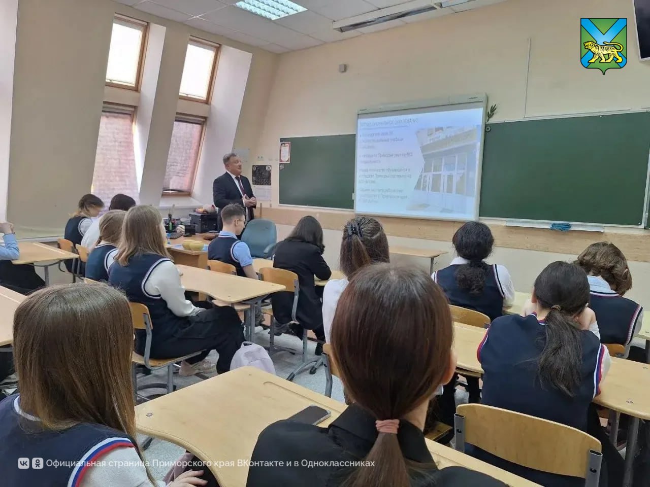 Во владивостокской школе №6 прошла всероссийская акция «Разговоры о важном». Урок провёл министр промышленности и торговли края Сергей Калитин