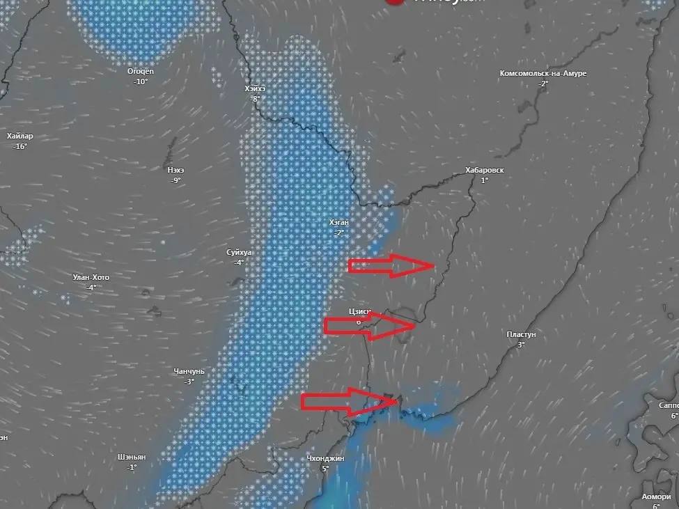 НОВЫЙ СНЕЖНЫЙ ЦИКЛОН УДАРИТ ПО ПРИМОРЬЮ УЖЕ В ЗАВТРА Угроза придет со стороны Китая. Актуальная карта прогноза погоды на сайте "Вести:Приморье".