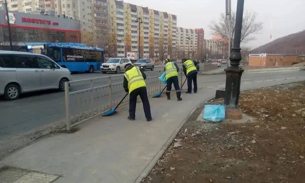 Фрунзенский район — уборка подземных переходов на улице Светланской; подметание тротуаров на Алеутской улице и Океанском проспекте.