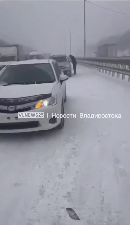 Тем временем на трассе под Уссурийском из-за снегопада произошли массовые аварии