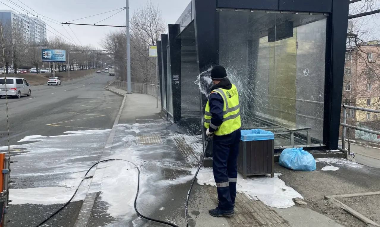 Советский район — комплексная уборка на улицах Чкалова и Енисейской; помывка остановок на проспекте 100-летия Владивостока и улице Маковского.