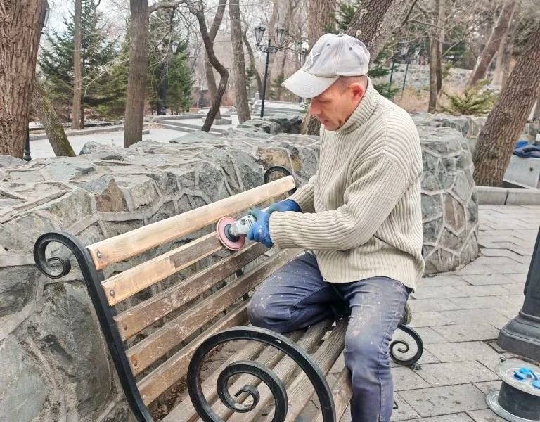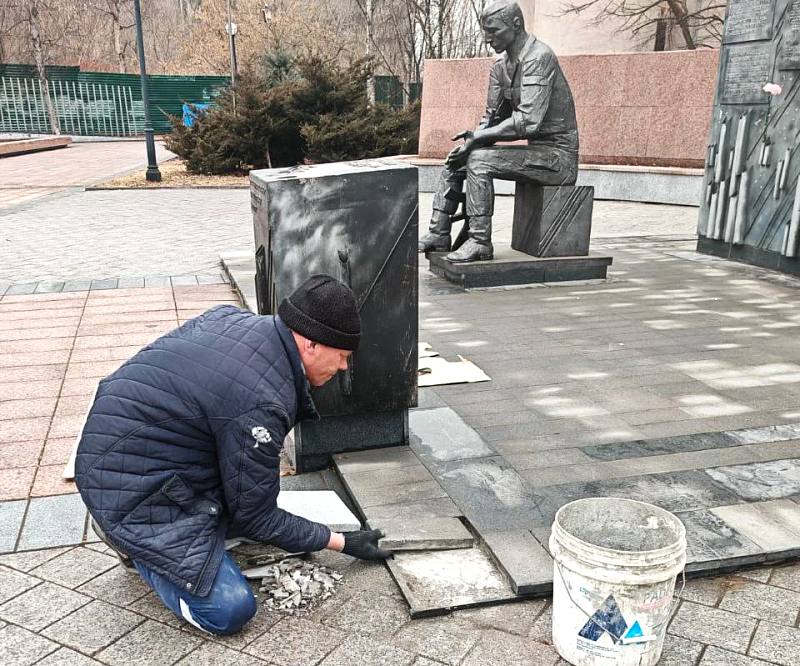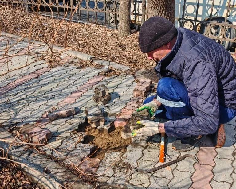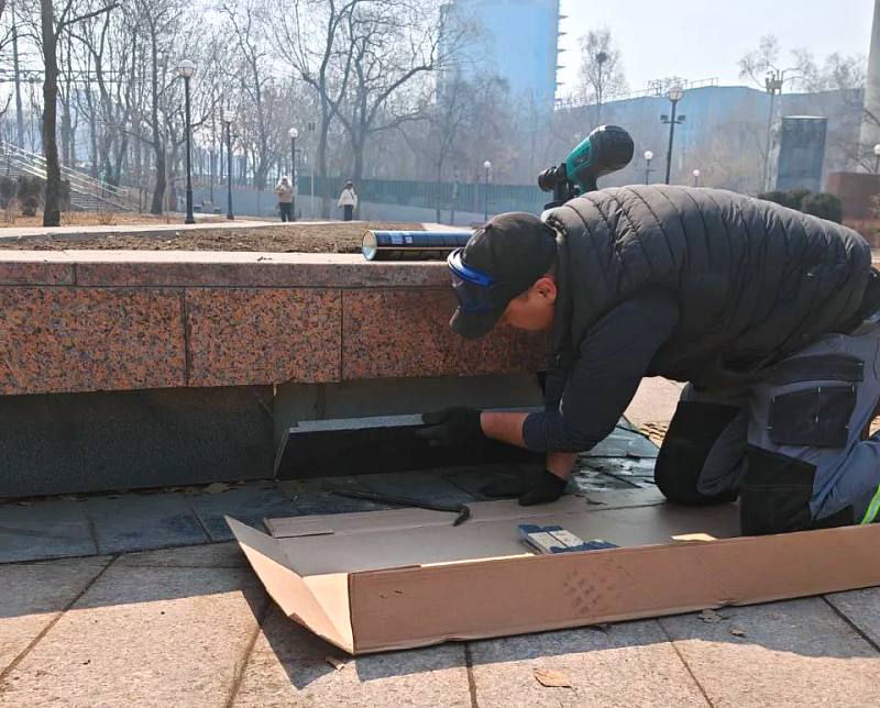 Бригады «Зелёного Владивостока» проводят локальный ремонт в общественных пространствах после зимы.