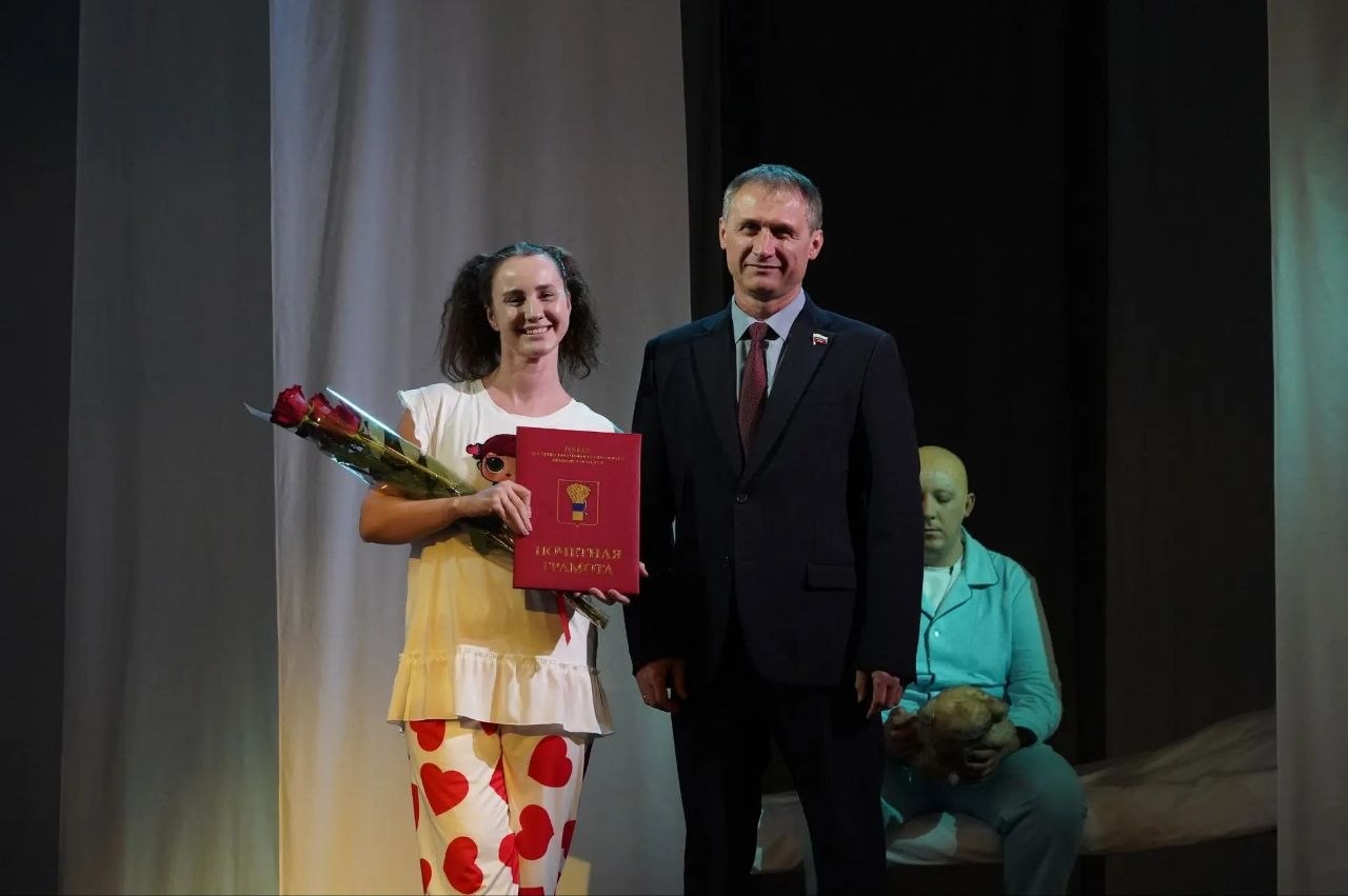 Глава Уссурийского городского округа Евгений Корж и общественный советник главы, попечитель театра Алена Корж вручили артистам и работникам театра почётные грамоты и благодарности — в знак признания их вклада в развитие культуры города. Также коллектив поздравил заместитель председателя Думы УГО Андрей Подоплелов.