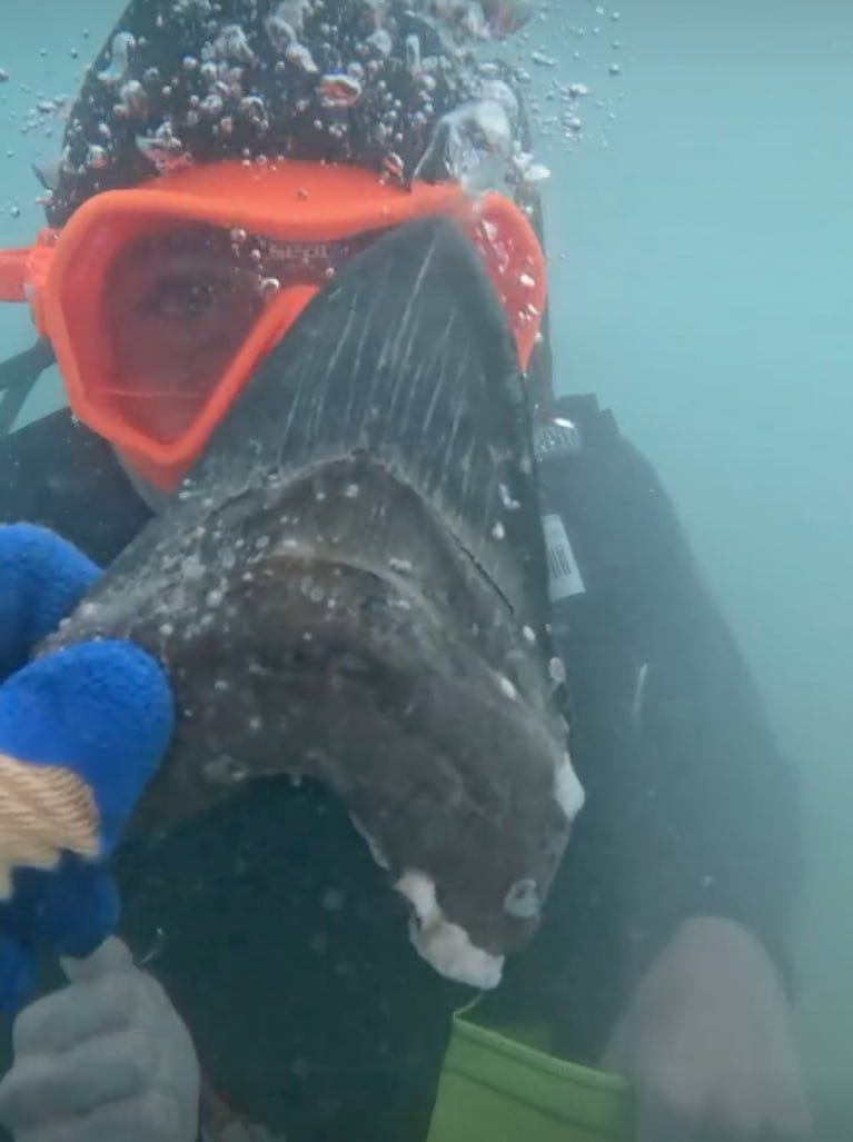 Шестнадцатилетний Эйден Эндрюс вместе с отцом Брайаном и капитаном местной туристической компании, занимающейся поиском ископаемых, обнаружил у побережья Флориды зуб акулы-мегалодона. Как сообщает New York Post, капитан судна Джон Креатсулас назвал находку большой редкостью — зубы такого размера находят крайне редко.