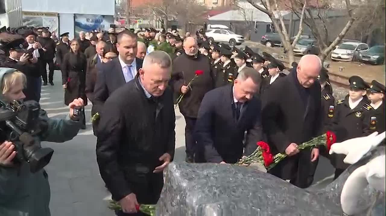 Во Владивостоке проводили учебное судно в новую экспедицию. По традиции церемония прошла у памятного знака морякам, погибшим в Цусимском сражении — участники почтили их память минутой молчания и возложили цветы.