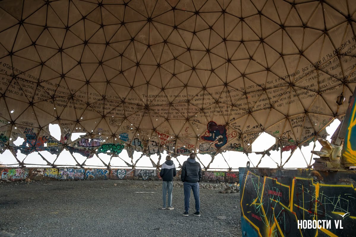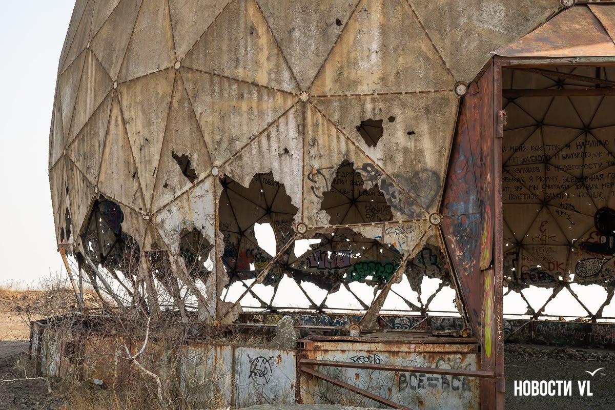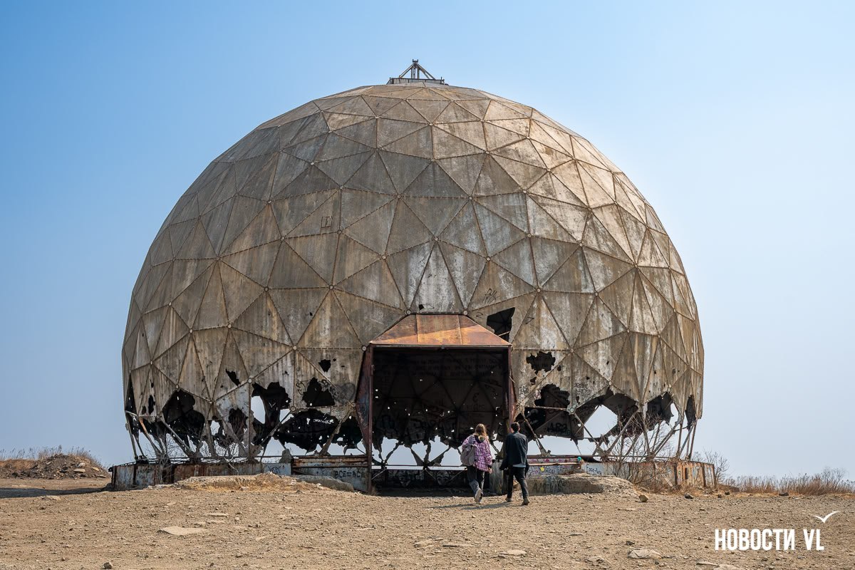 Бывшее радиопрозрачное укрытие радара ПВО на вершине Монастырской сопки переживает настоящее паломничество – даже в будний день сюда идут люди, чтобы запечатлеть негласный символ города. Ему грозит снос, правда, не в самое ближайшее время. По регламенту комиссия АТУ Первомайского района разместила на бывшем входе уведомление о признании объекта незаконным, но его сорвали.