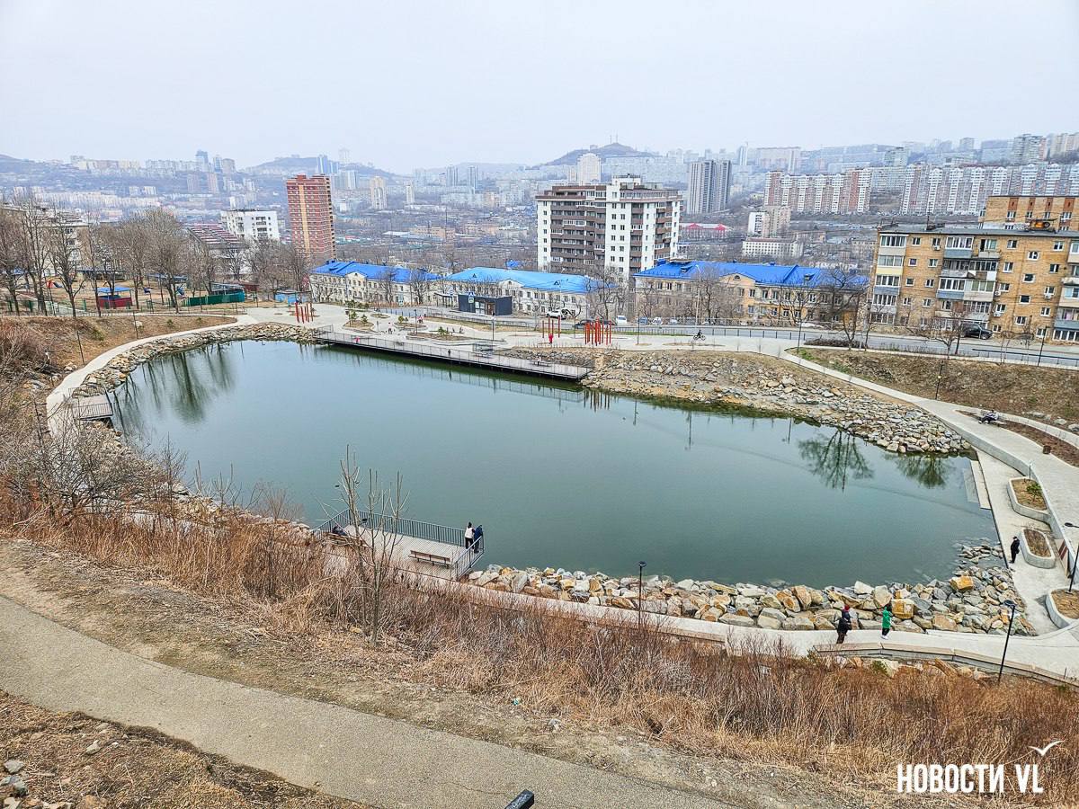Во Владивостоке озеро на улице Сафонова покрылось мусором и пленкой