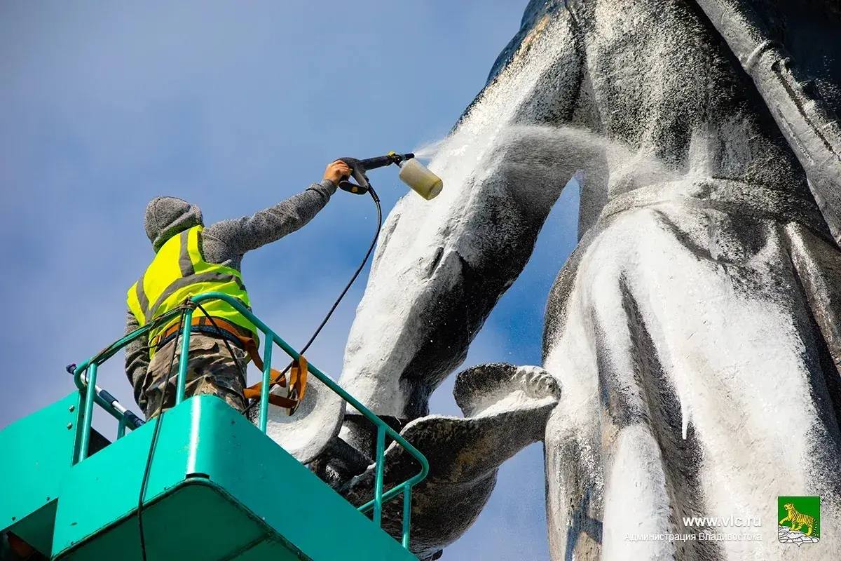 Коммунальные и дорожные службы наводят порядок в скверах и парках, моют памятники и красят леерные ограждения.
