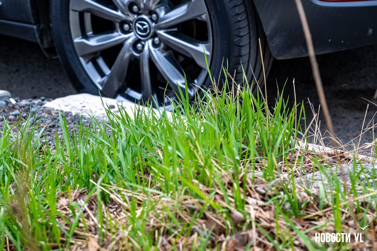Нежная травка и первые цветы появляются на клумбах и косогорах Владивостока