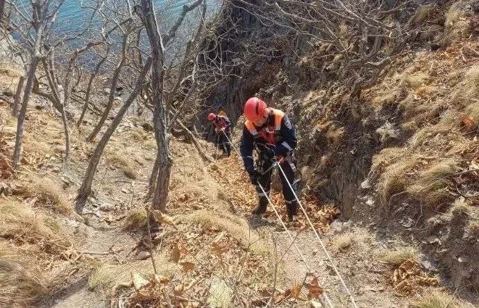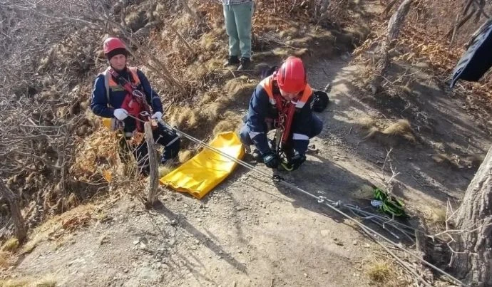 В районе мыса Пассека сотрудники Управления по делам ГО и ЧС Находки провели настоящую спасательную операцию. Во время прогулки стаффордширский терьер сорвался в глубокую расщелину и не мог выбраться самостоятельно изза крутого склона.