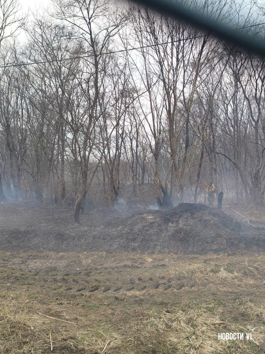 В селе Многоудобное в Шкотовском районе тушат пал травы. Возгорание произошло в районе переулка Луговой.