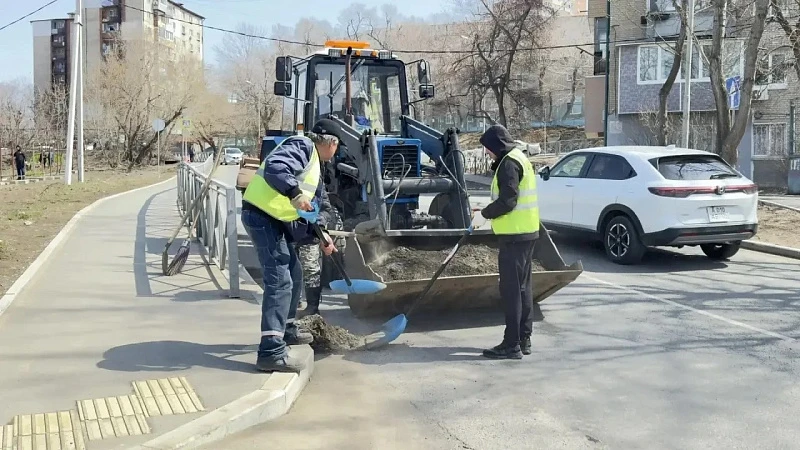 На прошлой неделе бригады городской службы провели уборку дорог на Университетском проспекте, Анны Щетининой, Стрелковой, Героев Хасана, Сафонова, Днепровской, 40 лет ВЛКСМ, Адмирала Фокина, Океанском и Партизанском проспектах, Коммунаров, Тобольской, Постышева, Фирсова, Адмирала Горшкова и других улицах.