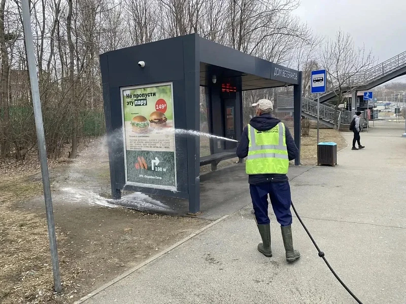 Также рабочие «СГТ» продолжают мыть тротуары и наводить порядок на автобусных остановках.