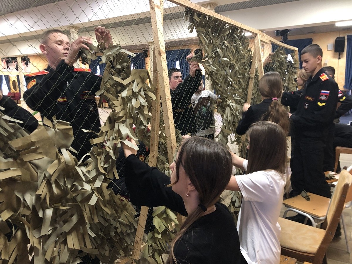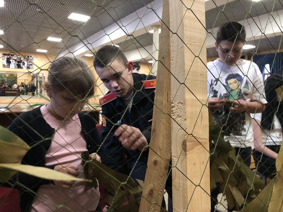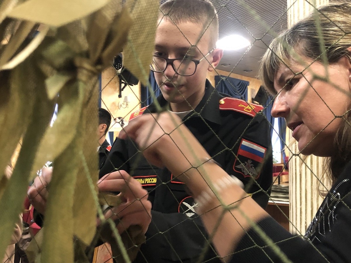 Воспитанники Уссурийского суворовского училища вместе с учениками школы №14 изготавливают маскировочные сети для военнослужащих. Суворовцы, уже освоившие это важное дело, выступили в роли наставников для школьников и научили их всем тонкостям плетения.