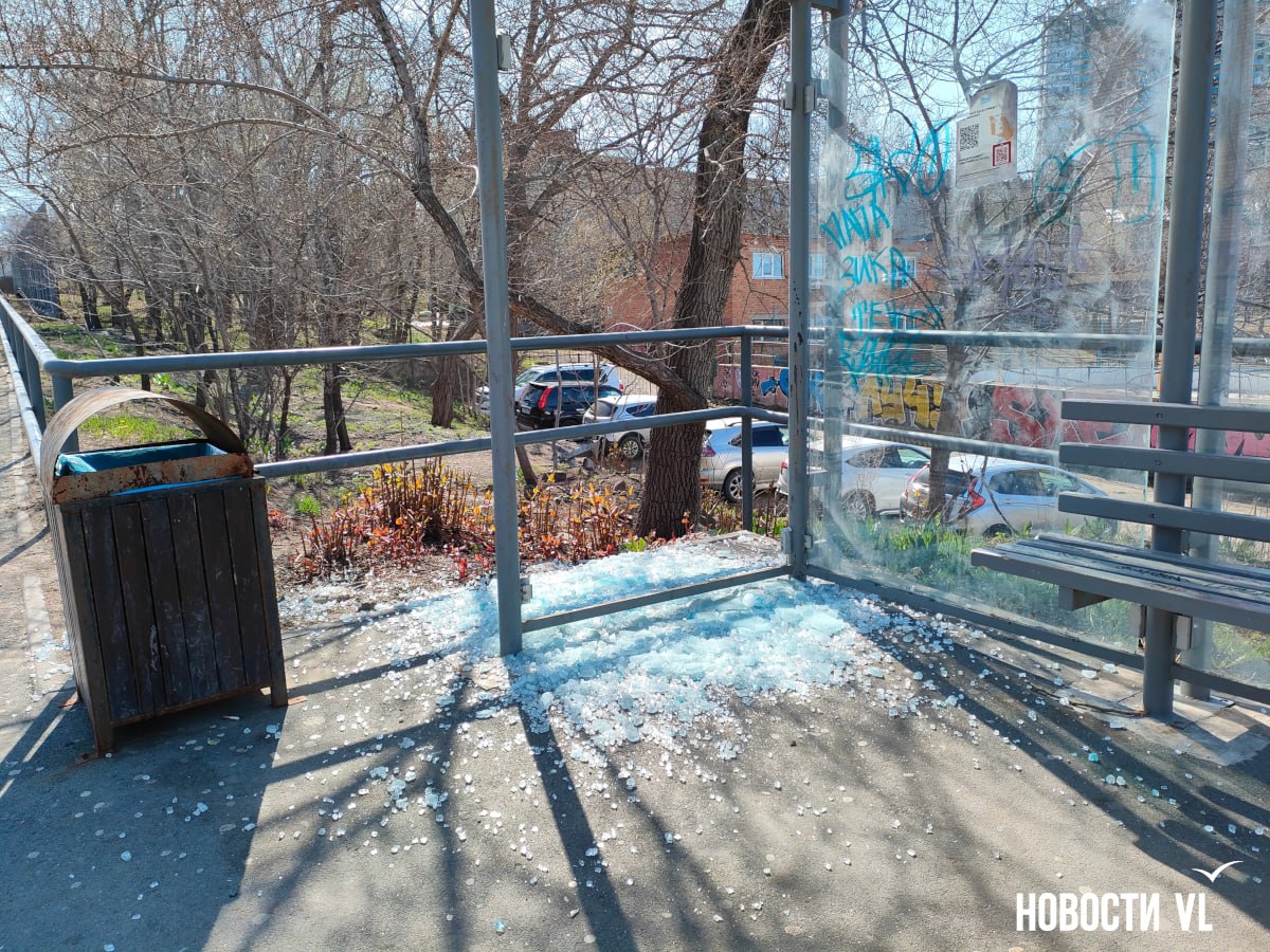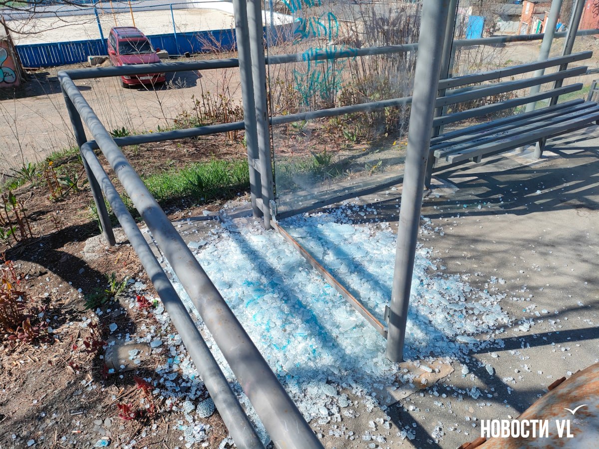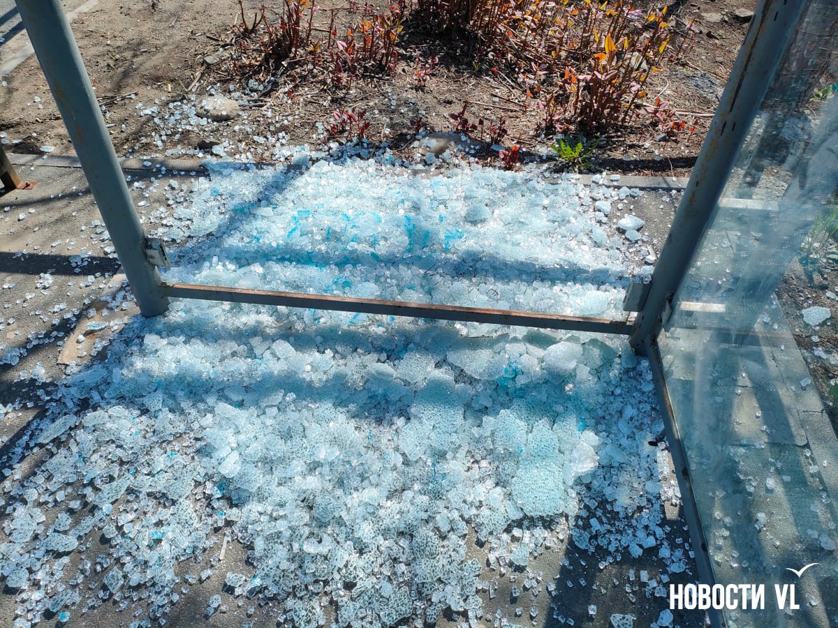 В этот раз неизвестные разбили остановку на Бурачка.Подпишись на NewsVL.ru