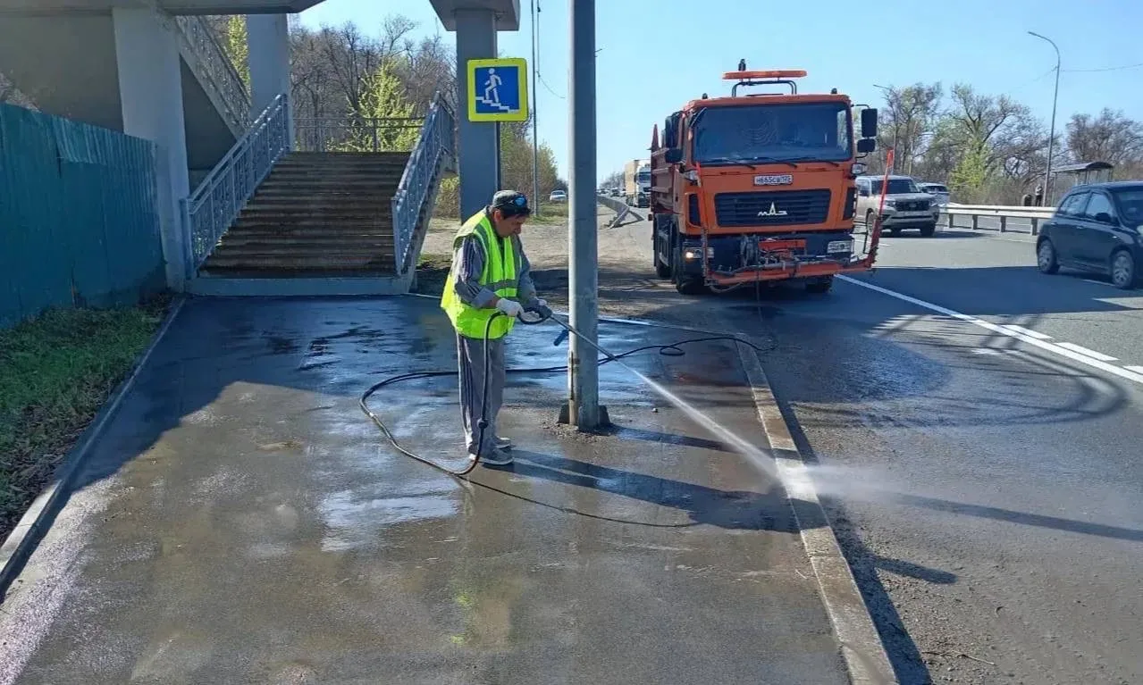 Первомайский район — комплексная уборка на улицах Надибаидзе и Вилкова; вывоз мешков после субботника; помывка остановочных карманов на улицах Катерной, Добровольского и Сахалинской.