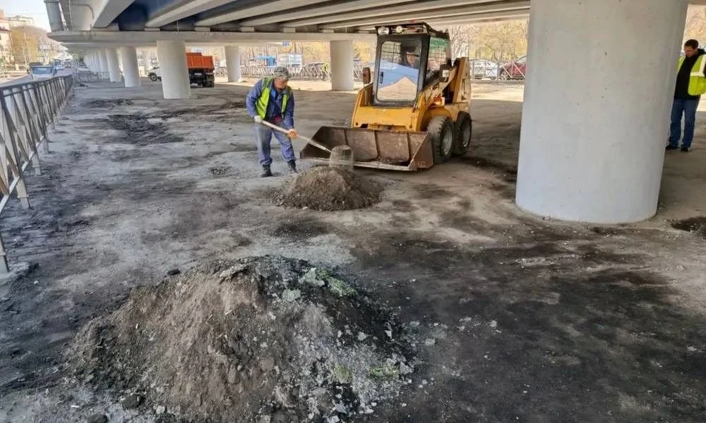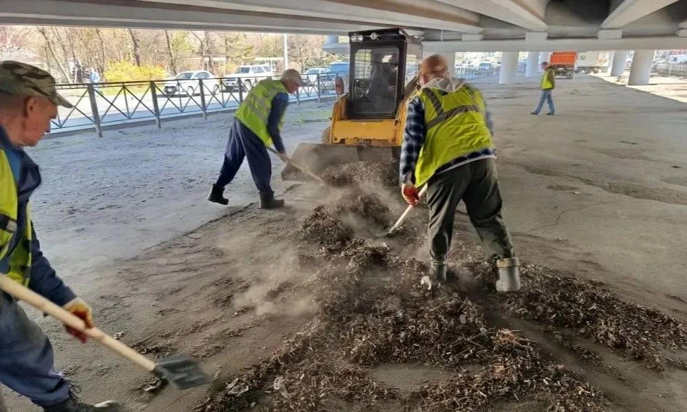 Советский район — комплексная уборка на проспекте 100-летия Владивостока (подмостовое пространство в районе Второй речки).