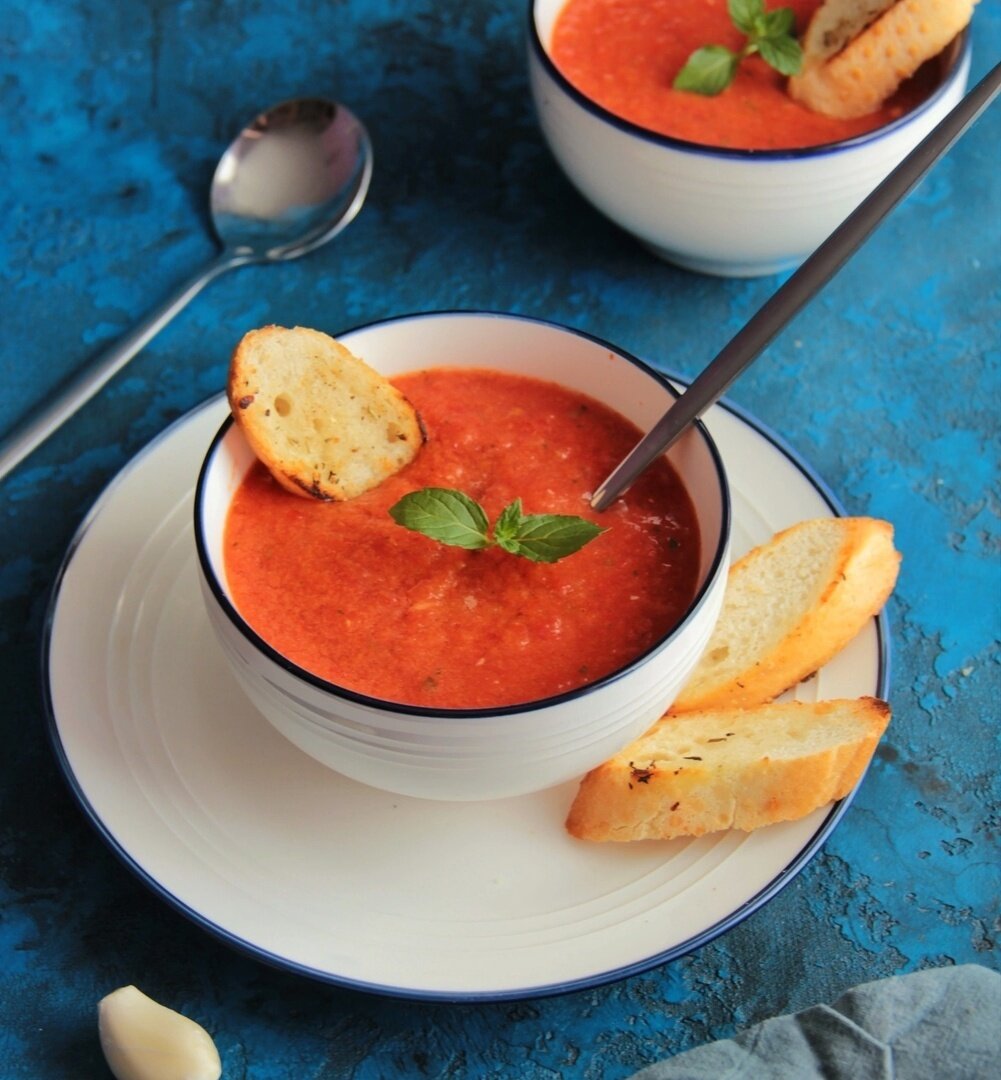 С приходом долгожданного лета пришло время для легких и свежих блюд! Настоящая находка для жарких дней — это легкий овощной суп, который отлично утоляет жажду и дарит ощущение свежести. Сегодня предлагается приготовить а-ля гаспачо с аппетитными чесночными гренками, обжаренными на оливковом масле с щепоткой средиземноморских трав.