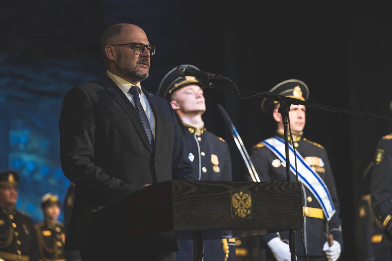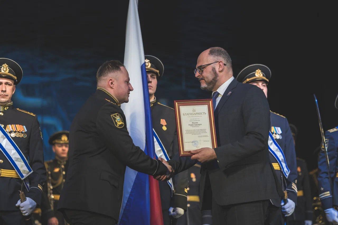 Поблагодарил каждого, кто внес вклад в развитие Военно-морского флота России и кто сегодня несет службу на просторах Мирового океана, а также вручил награды.
