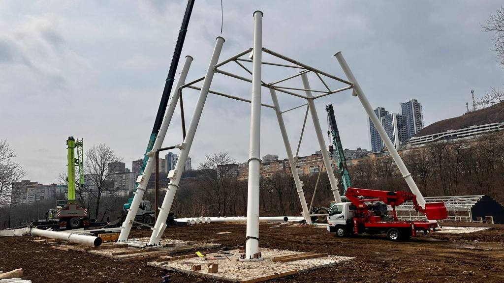 В парке «Минный городок» начали собирать самое высокое колесо обозрения в Приморье.