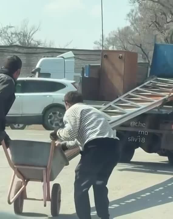Во время движения у нее сломалось колесо, однако мужчины не остановились и продолжили путь, несмотря на поломку.