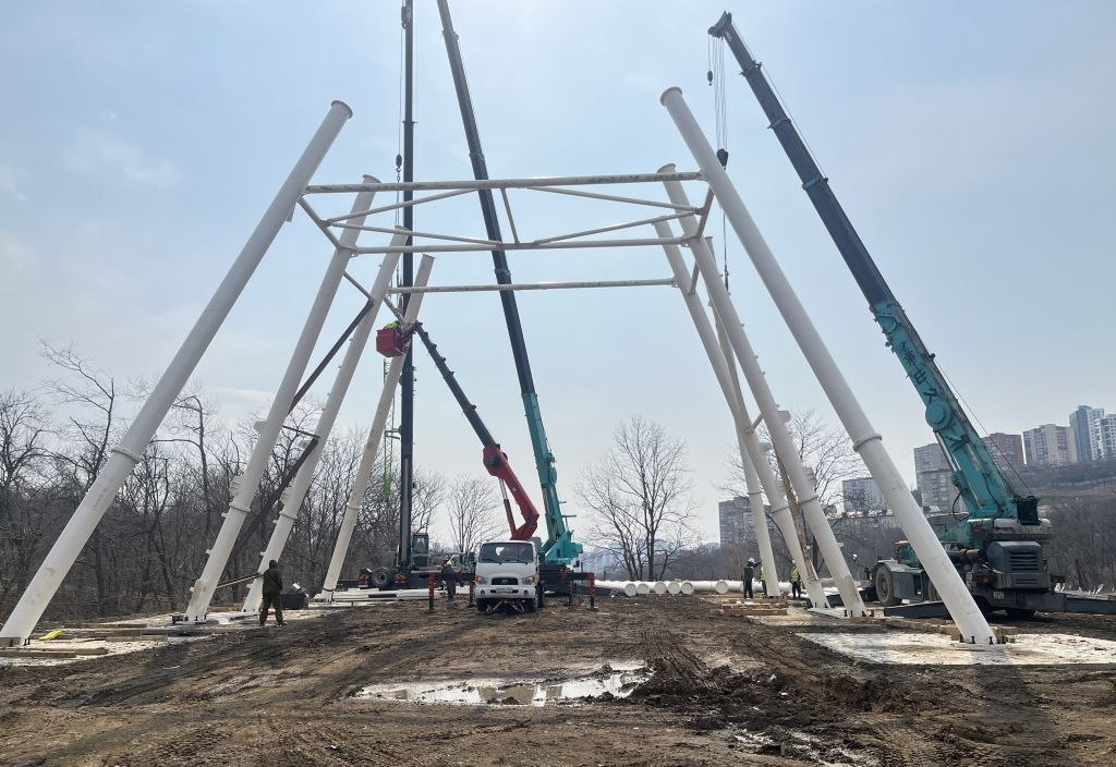 Готова спортивная площадка, почти завершены детские аттракционы и верёвочный парк. Строятся ангар, мастерские и кафе-оранжерея, монтируется колесо обозрения. Параллельно прокладывают инженерные сети.