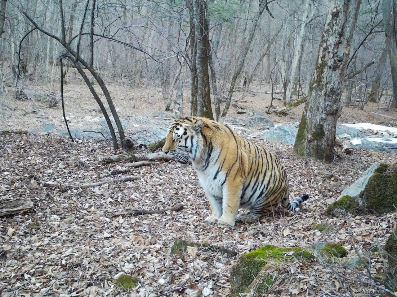Тигр попал на камеру после плотного обеда и стал звездой соцсетей