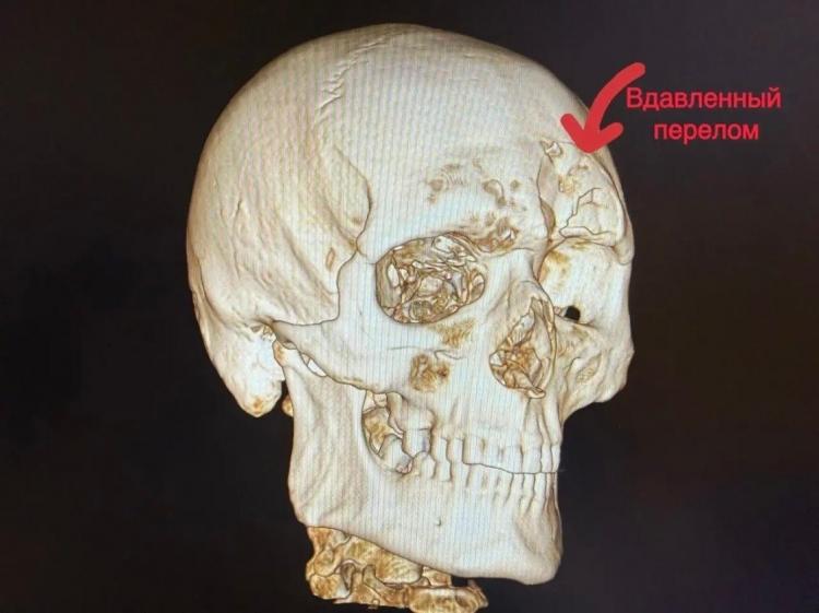 После серьезной травмы у 38-летнего мужчины диагностировали ушиб головного мозга и сложный многооскольчатый перелом лобной пазухи. Удар был настолько сильным, что кость буквально провалилась внутрь почти на сантиметр, из-за чего лицо человека стало асимметричным, а в области лба образовалась глубокая вмятина.