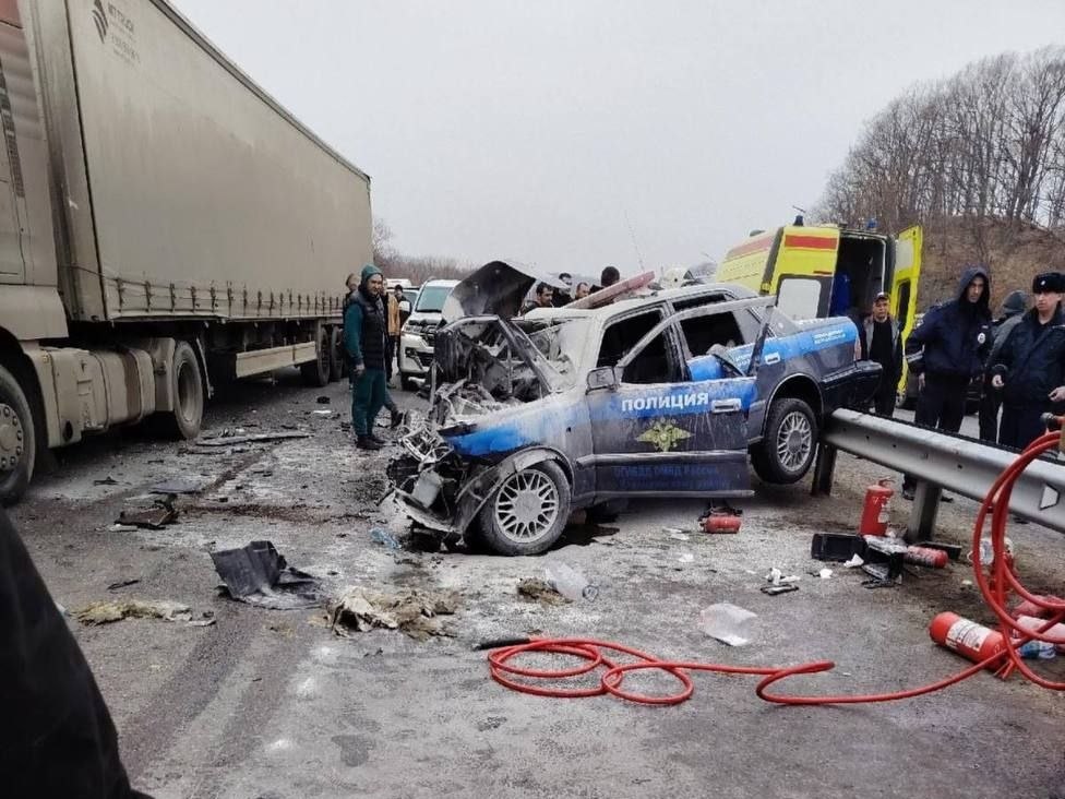Прокуратура Приморья уточняет, что в результате аварии один сотрудник ДПС получил травмы, несовместимые с жизнью. Второй с травмами различной степени тяжести доставлен в медицинское учреждение.