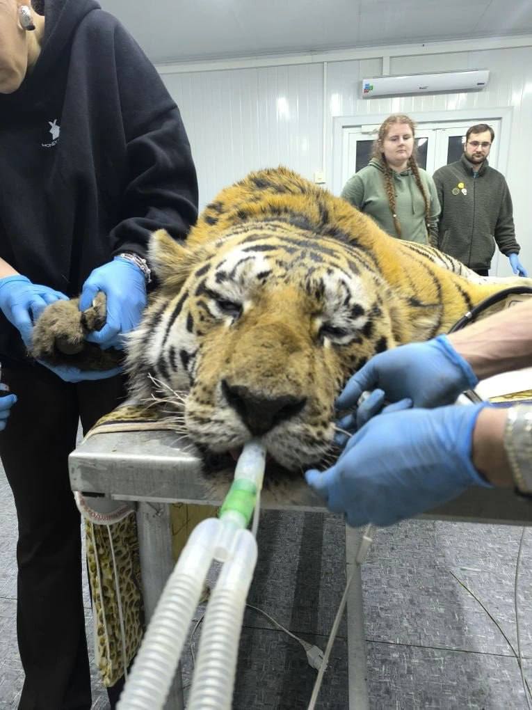 У хищника травмирована передняя лапа. Его доставили в центр «Тигр» в селе Алексеевка.