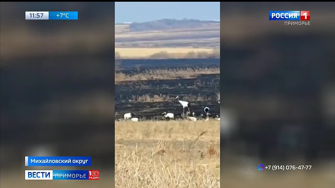 В Приморье журавли прилетели. Клин заметили над Михайловском округом. Уставшие странники сели на луг у села Ленинского, чтобы перевести дух после долгого перелёта.