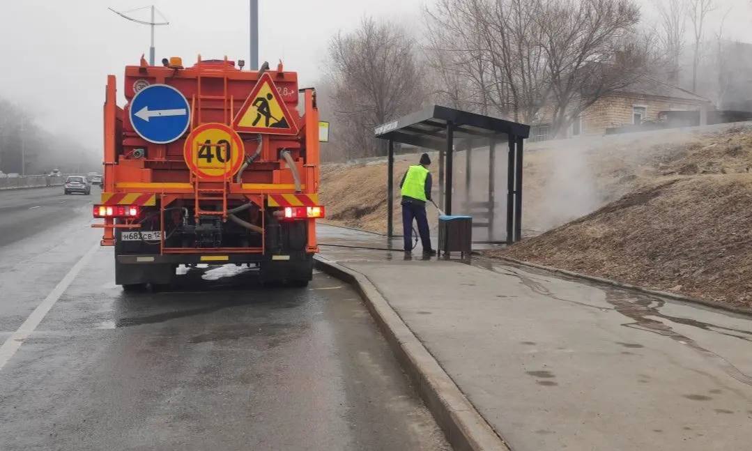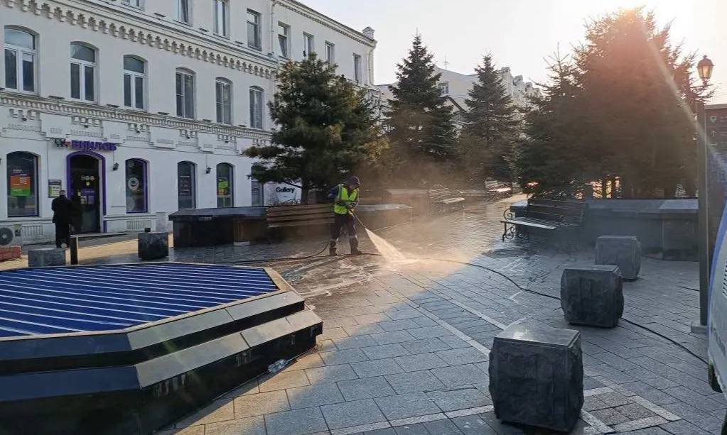 К работам уже привлечены лееромоечные машины для помывки ограждений, поливомоечные и подметально-уборочные машины для очистки дорожного полотна, а также мойки высокого давления, для влажной уборки на пешеходных зонах.
