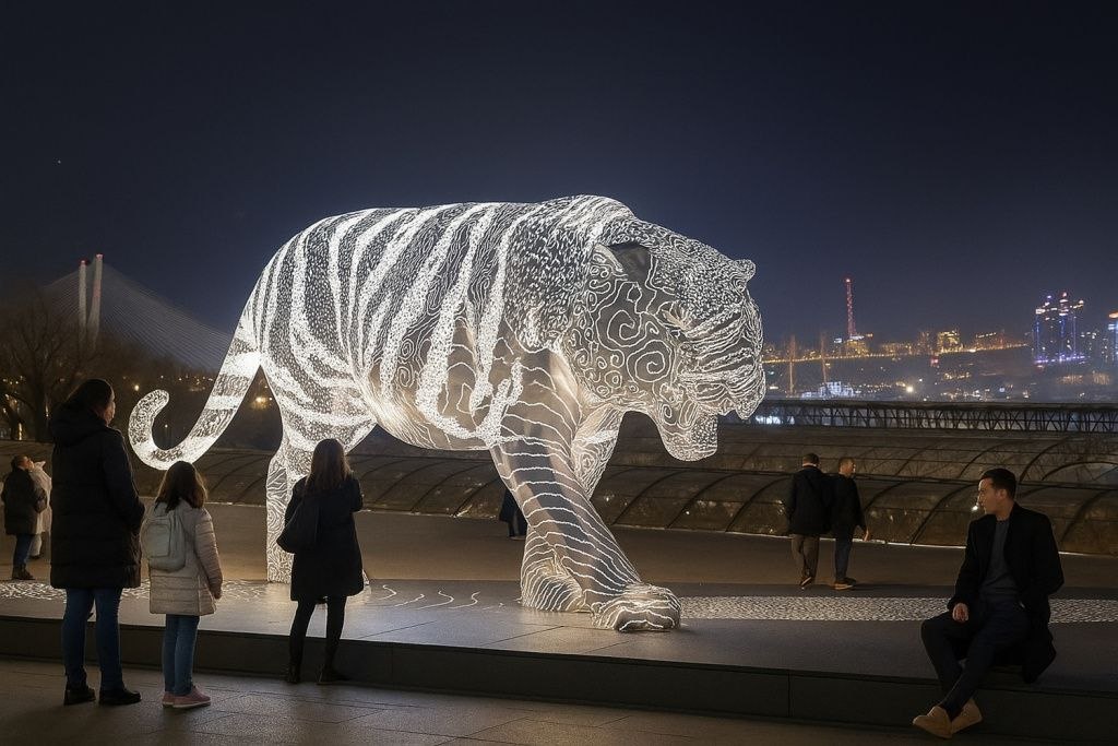 Главной достопримечательностью станет 3,5-метровая металлическая фигура амурского тигра. В тёмное время суток её полосы будут подсвечиваться, создавая эффектный визуальный акцент.