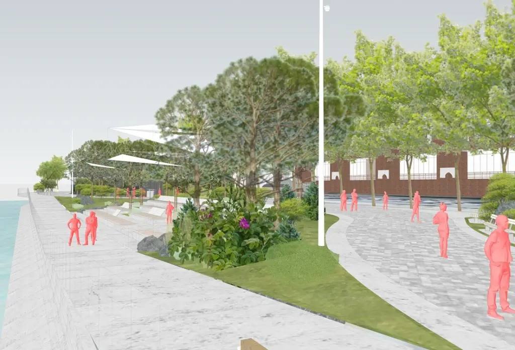 Главная прогулочная артерия набережной свяжет все зоны отдыха и откроет череду живописных видов на море и корабли в заливе. Вдоль пешеходного маршрута разместятся уютные зоны отдыха с тенью от деревьев, где можно будет остановиться и отдохнуть.