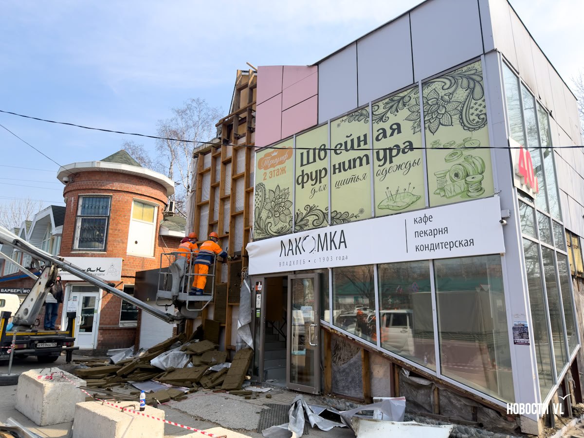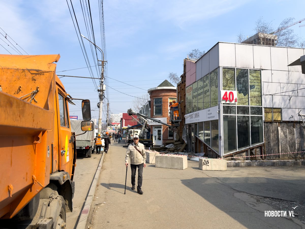 На Русской сносят двухэтажное здание с пекарней и швейным магазином