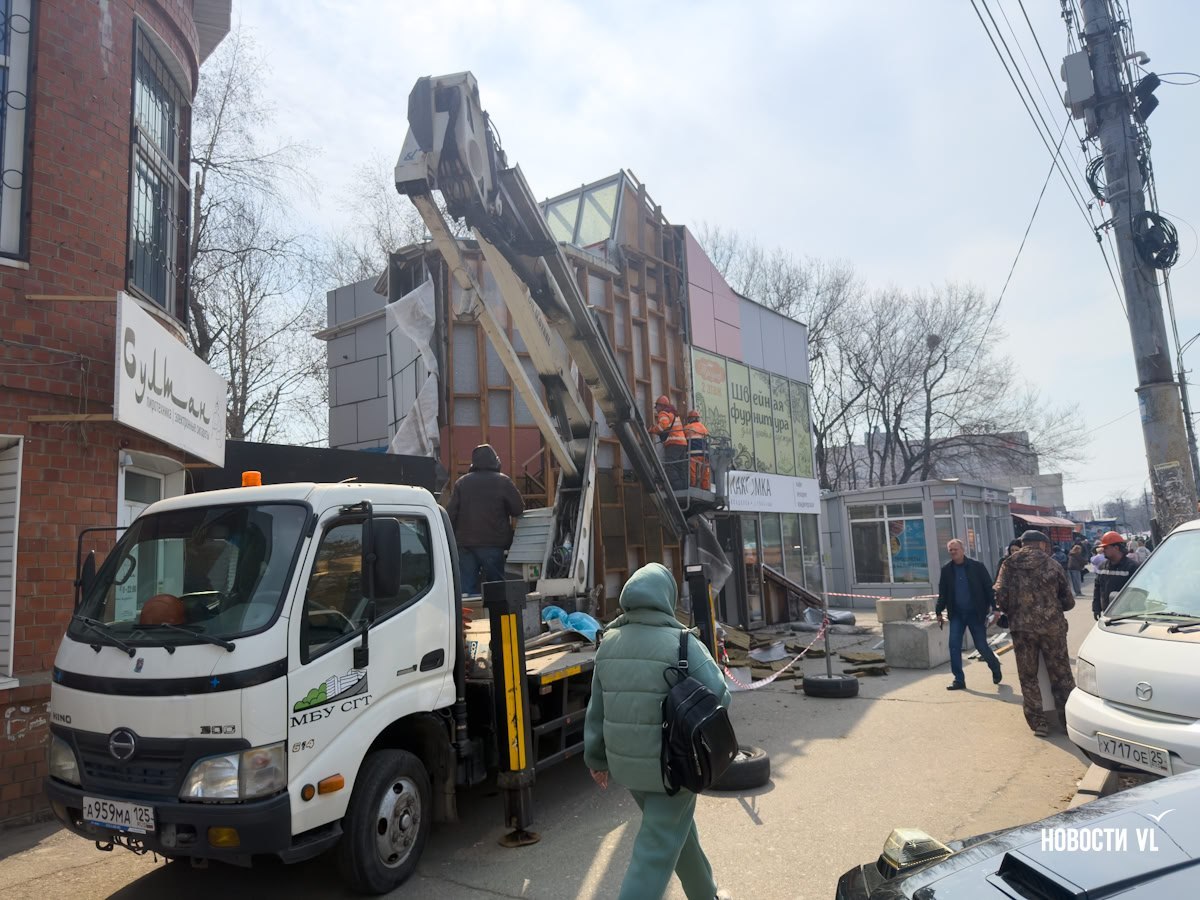 На Русской во Владивостоке демонтируют двухэтажное здание с магазинами