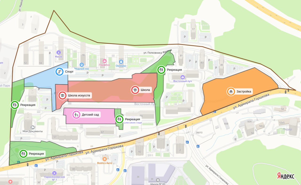 Администрация Владивостока начала процедуру общественных обсуждений проекта планировки и межевания территории в комплексе «Д» Снеговой Пади. По плану здесь предполагается строительство большой общеобразовательной школы, школы искусств, детского сада, довольно большой спортплощадки и ещё одного жилого комплекса на углу квартала. Но случится всё это ещё не скоро – все объекты в очереди до 2040 года.