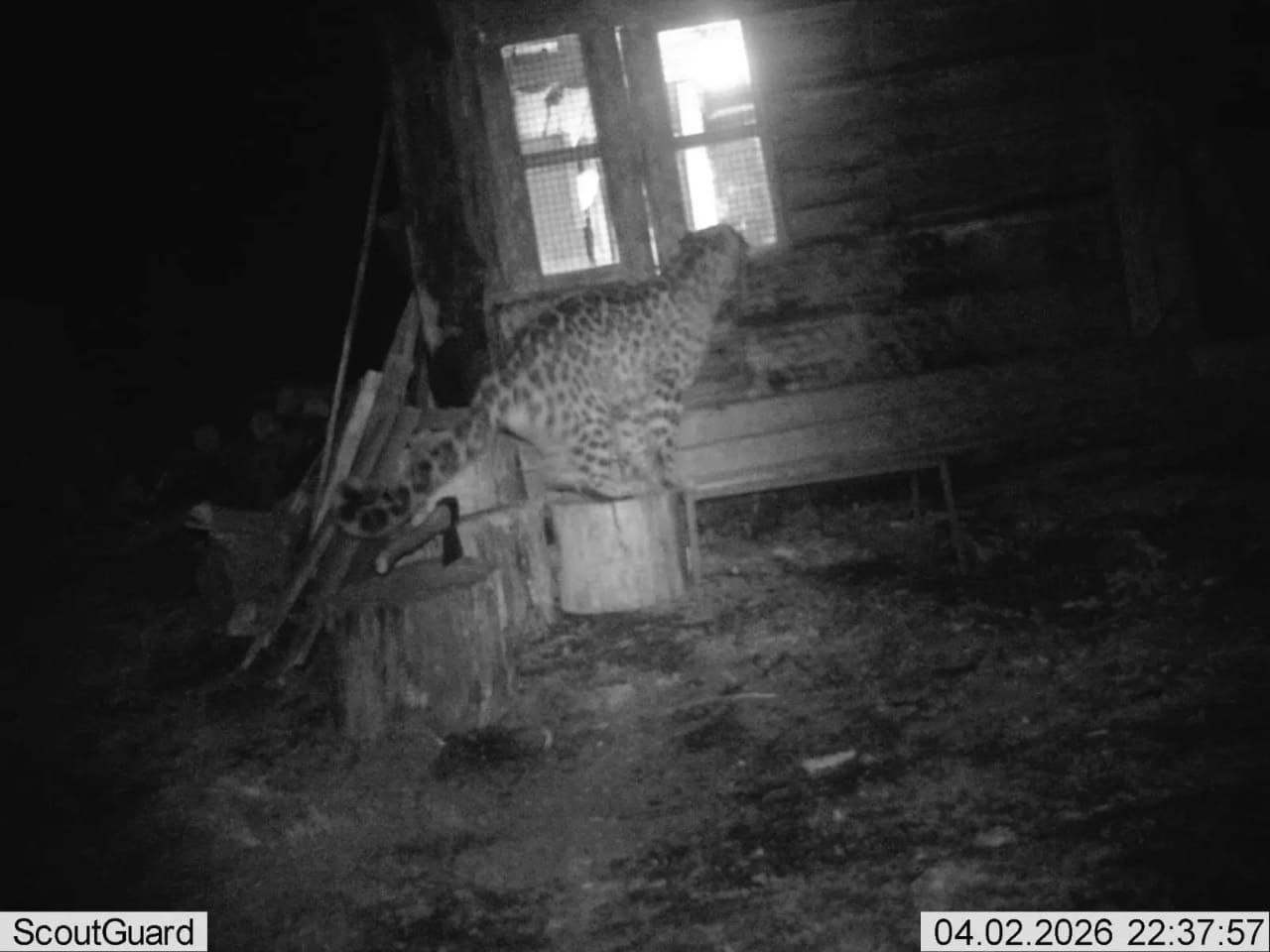 Ночью хищник вышел к людям, но попасть внутрь ему не удалось. Не сумев проникнуть в дом, зверь забрался в сарай на участке и съел гуся.