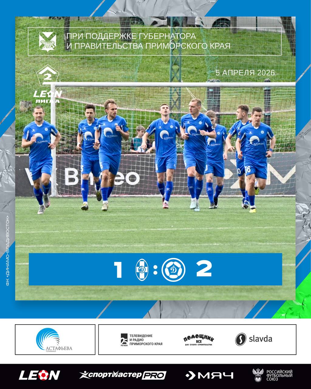 ФК «Динамо-Владивосток» победил «Динамо» (Ставрополь) в динамовском дерби 7 тура LEON-Второй лиги «А». Команда Константина Дзуцева выиграла на выезде со счетом 2:1. Первый гол за «динамовцев» забил полузащитник Дмитрий Канаев.