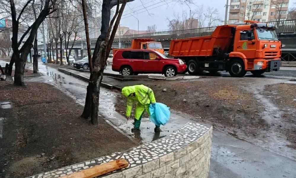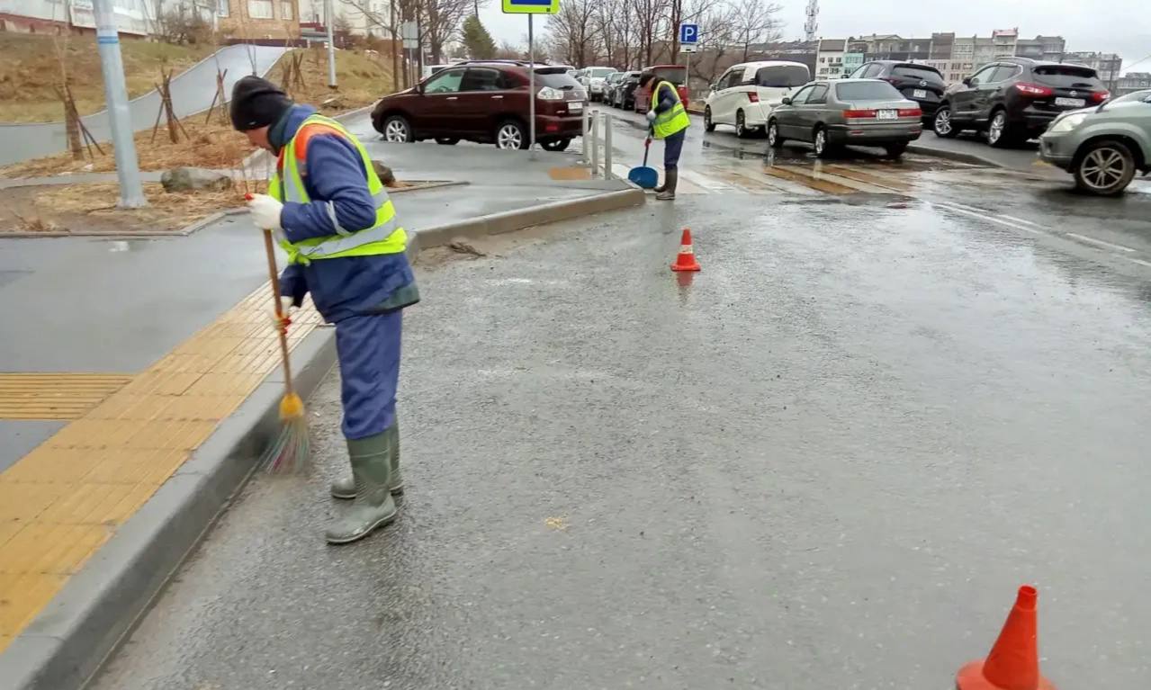 Первореченский район — уборка подземных переходов на проспекте 100-летия Владивостока; уборка прибордюрной полосы от Молодёжной до Днепровской.