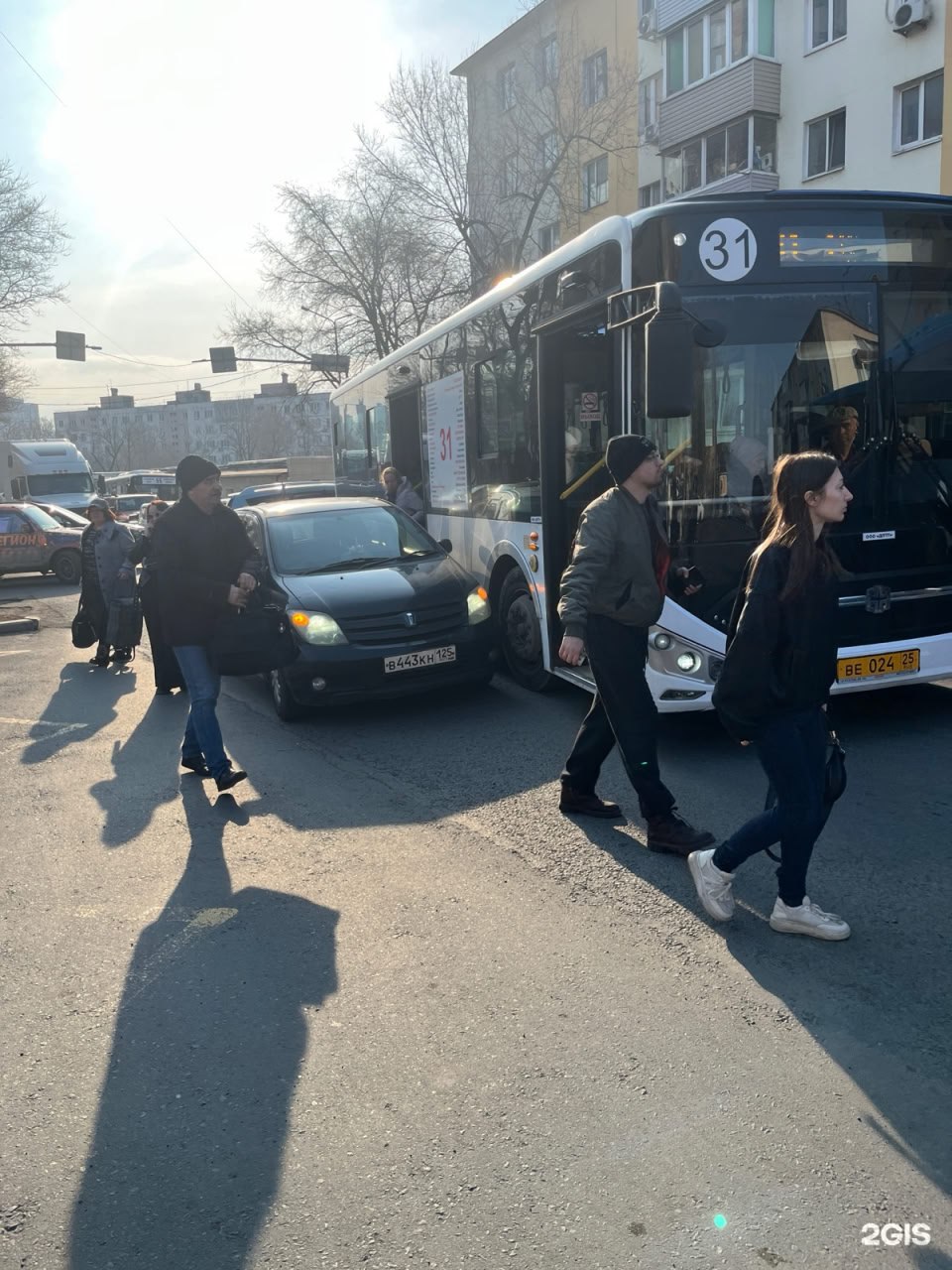 Между Луговой и Гайдамаком возле остановки «Детский сад №154» столкнулись автобус №31 и Toyota ist. Собралась пробка.
